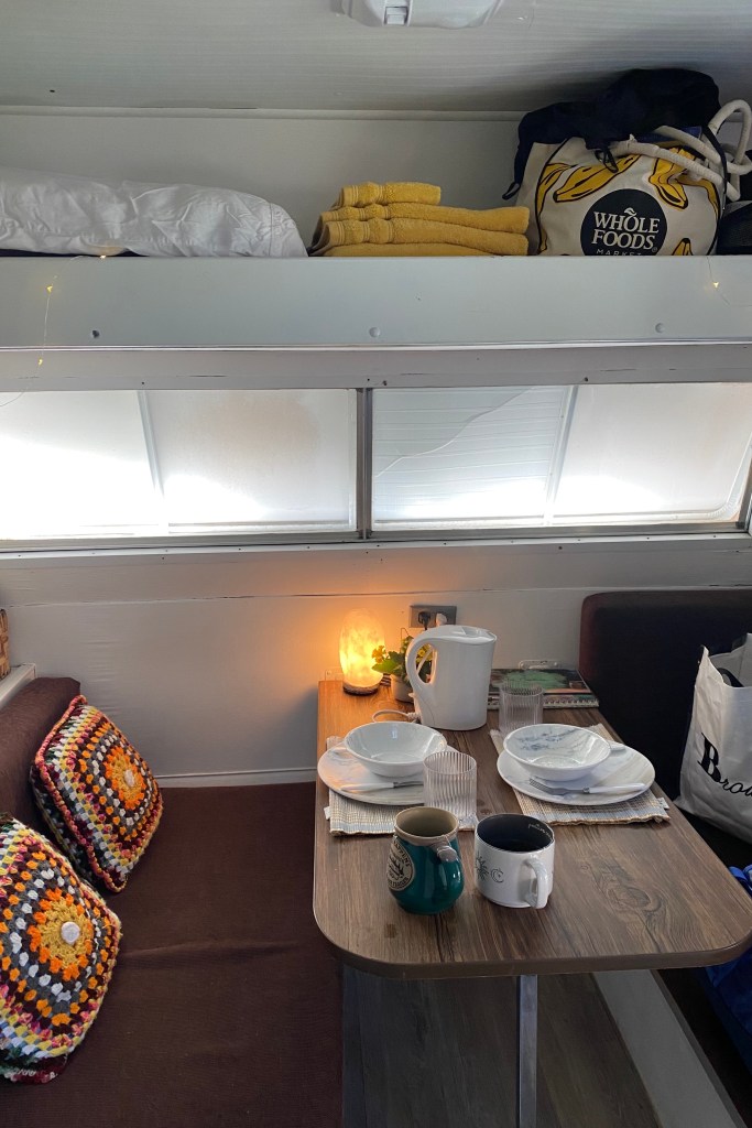 Inside, there was a fully operational kitchen, full bathroom and sitting area, complete with games and snacks. We stayed in the City Caravan for 2 nights and loved being able to relax in the tub after a long day of hiking, while cooking our burgers on the BBQ.