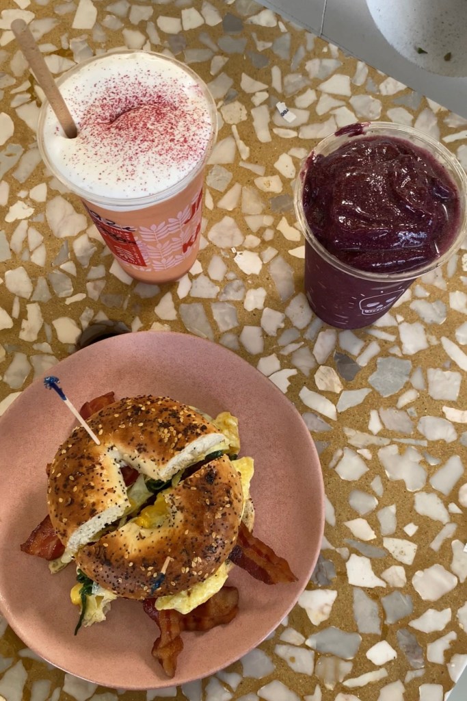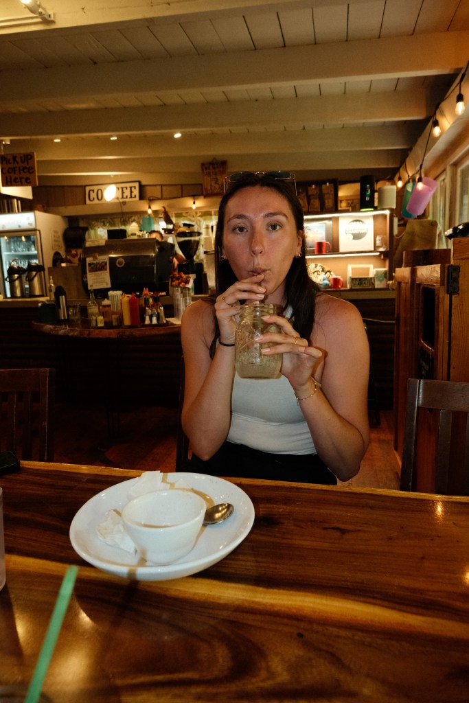 We arrived early on Kauai after a flight from Honolulu. A rental car is essential for exploring Kauai—public transit is limited, and there are no ride-sharing services. After picking up the car, we stopped at Java Kai in Koloa for breakfast. This local, open-air spot had incredible coffee, bagels, and açai bowls—the perfect fuel for a big day.