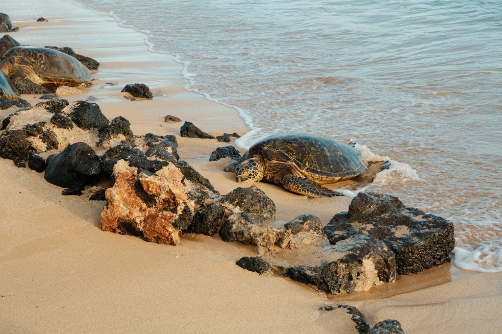 Poipu Beach, located on the south side of the island, is known for the massive green sea turtles that are known to bask in the hot sand. In addition to tons of turtles, this beautiful beach had a protected cove that was perfect for snorkelling. We watched as the sun went down and the waves washed up and around the 15 green sea turtles that were nestled in the sand.