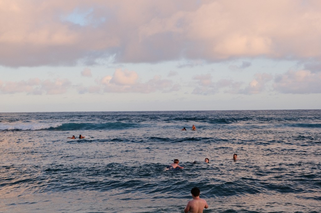The entrance to the Queen’s bath trail sits in a private neighbourhood. To avoid fighting for the 4 parking stalls or getting a ticket, we opted to pay $20 and park at the Makai Golf Course and walk a short 15 minutes to the trail head. The trail weaves through a thick brush until you pop out on the coast. Head left and continue to walk until you see a large cove. This first cove you’ll see is rough, with waves splashing and breaking over the rocks. We avoided swimming in this one, deciding it was too dangerous. We kept walking another few minutes and found a more calm swimming hole, where we could float and check out the sea life beneath us in the crystal clear water.