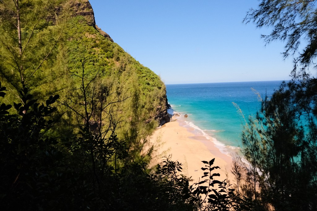 We took an early shuttle, departing around 7am from the park and ride. This was a great decision that allowed us to do the majority of our hike without being in the afternoon heat. If you are planning to hike on the Kalalau trail beyond the beach of the waterfall, you will need to book a backcountry pass in advance.