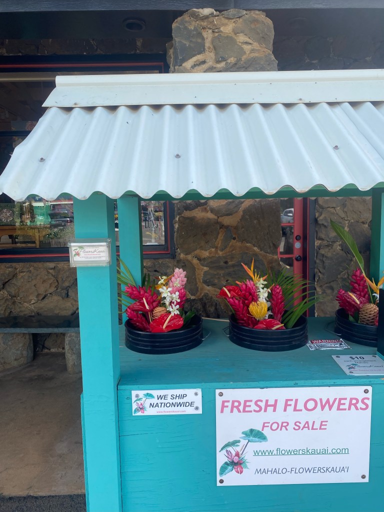 We spent the morning noodling around the little shops in Kilauea. There were beautiful arrangements of flowers, funky furniture stores, and local, handmade clothing boutiques. Be sure to check out Historic Kong Lung Market Center for unique gifts and trinkets.